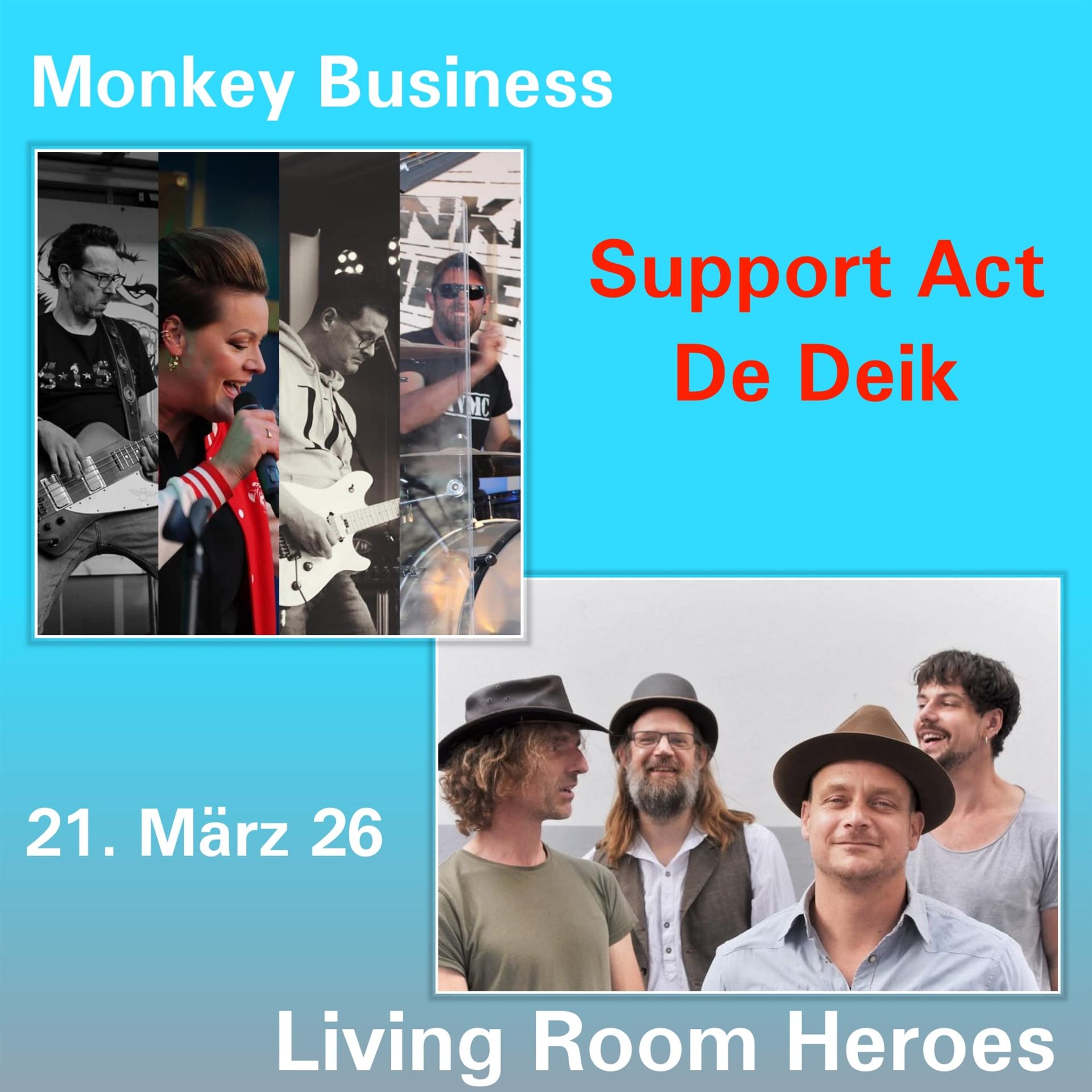 De avond wordt geopend door De Deik, de ultieme ode aan de Nederlandse band De Dijk. Daarna betreedt de Nijmeegse formatie Living Rooms Heroes het podium met hun energieke sound. De finale? Die is voor Monkey Business uit Emmerich, die de avond gegarandeerd knallend afsluit.
